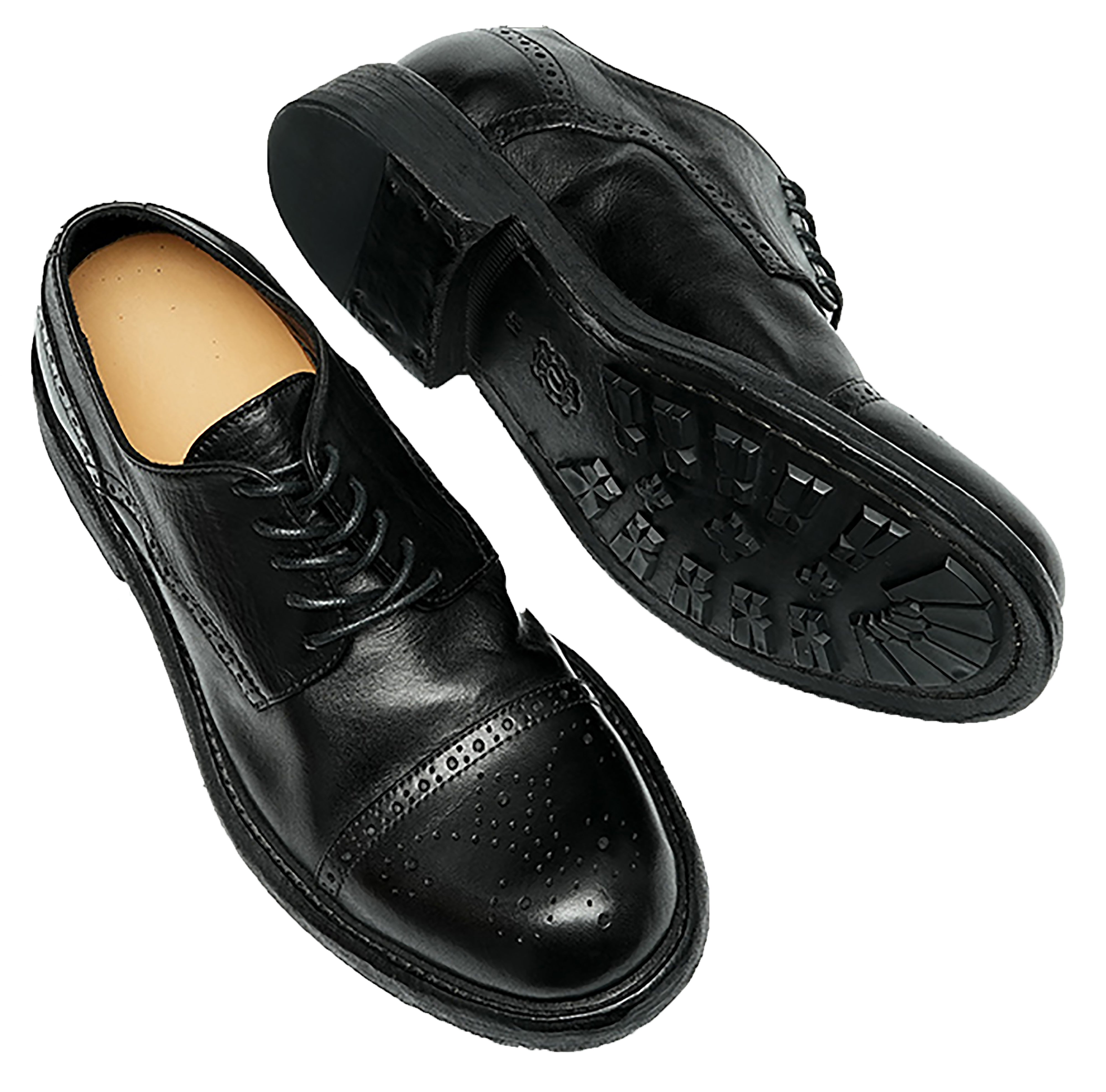 El enfoque sofisticado pero moderno de Santimon hacia el diseño de calzado se demuestra en estos Oxfords . Confeccionado por expertos con una primera capa de piel de vacuno , este par cuenta con una suela de goma gruesa, en sintonía con la estética clásica pero contemporánea.